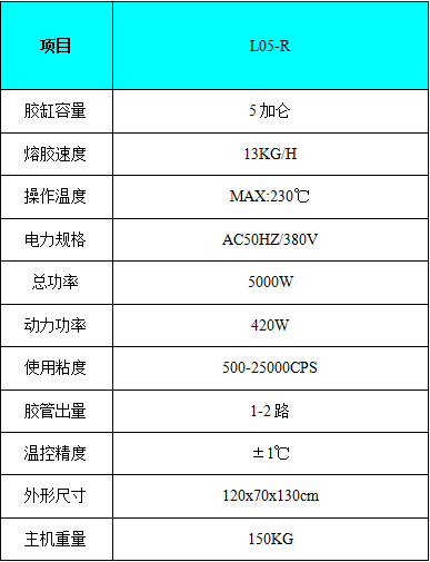 LO5-R PUR熱熔膠機(jī)詳細(xì)參數(shù):